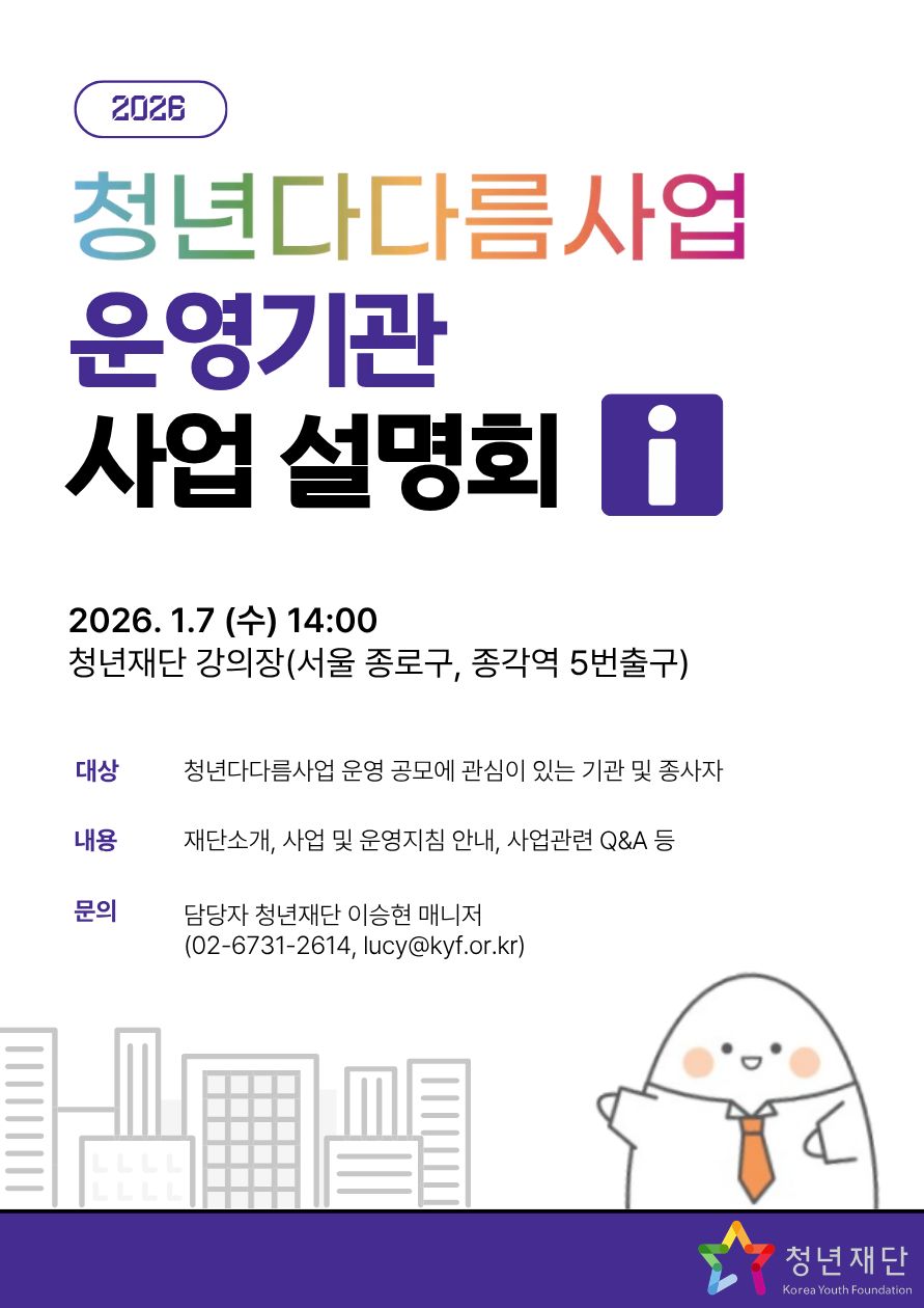☏ 문 의 : 담당자 청년재단 이승현 매니저(02-6731-2614, lucy@kyf.or.kr)